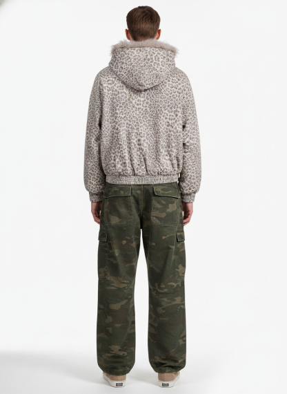 Cotton Cheetah Print Mink Fur Hooded Jacket - 2270
