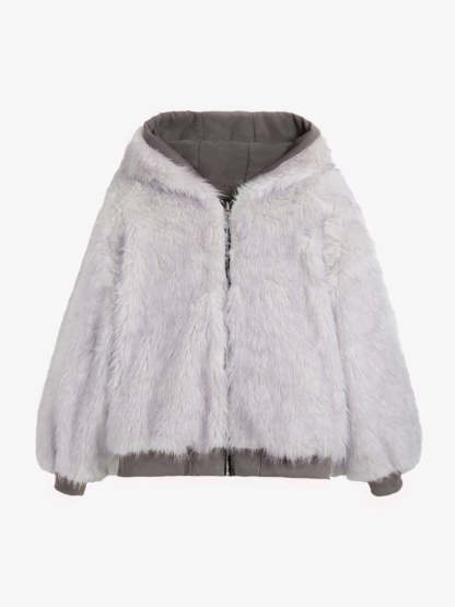Oversized Reversible Fur Hooded Jacket - 2544
