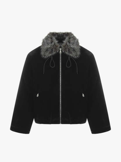 Vintage Drawstring Design Fur Collar Padded Jacket